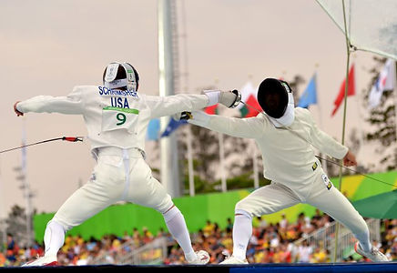 Fencing is conducted within the piste – a long narrow area marked for play (1.5 to 2m wide x 14m long). Athletes must stay within the parameters of their fencing piste at all time during a bout.